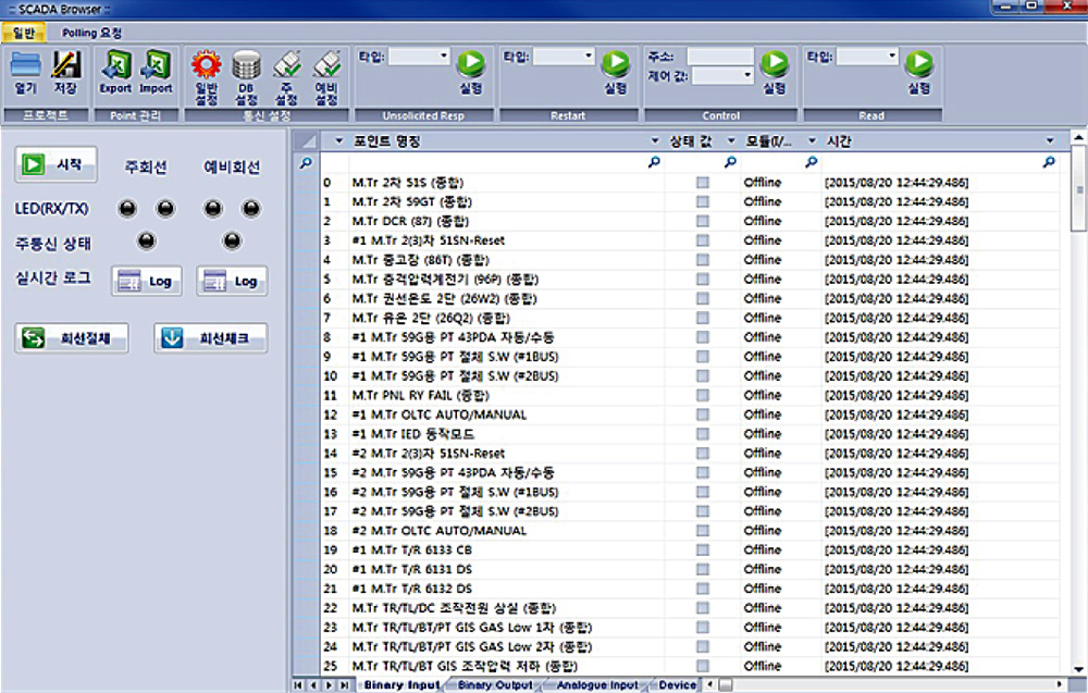 IEC 61850 변전소자동화 시스템과 연동하는 SCADA 시스템을 모의하여 전체 시스템 연동 이전에 실제 SCADA의 모든 기능을 모의하여 적절하게 구성되었는지 확인할 수 있도록 제공하는 제품입니다. 본 제품은 통신 이중화 기능(주/예비 연동), Serial/TCP IP 지원, 이벤트 기록, 포인트 제어, KEPCO DNP 1.0 지원 및 감시/제어/계측 1,000포인트 이상 생성 등의 기능을 제공합니다.
